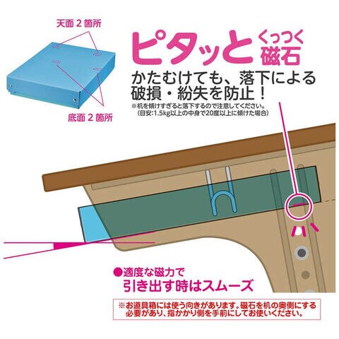 ・ピタっとくっつく磁石付きで学校机の引き出しにくっつく!落下しにくく、適度な磁力なので引き出しやすい
