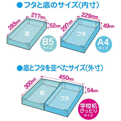 ・サイズの違いは色ですぐにわかる(文房具と教科書・ノートが入る底B5、フタA4サイズ)