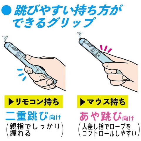・跳びやすい持ち方ができるグリップ形状(二重跳びに適したリモコン持ち、あや跳びに適したマウス持ち)