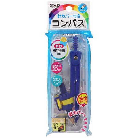 鉛筆をしっかり固定できるコンパス 小さい円も描きやすい最大直径300mm 紛失しない開閉式の針カバー 鉛筆をしっかり固定できるホルダー部分
