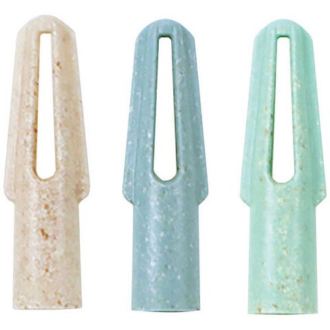 芯が見えて転がらない!捨てていたモノ(帆立殻、卵殻、紙粉)を再利用し、窓つき形状にする事でプラスチック使用量を減らしました。三角軸、丸軸、六角軸の鉛筆に使えます。