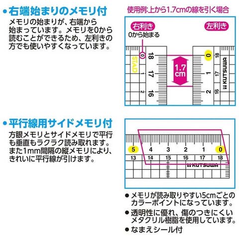 クツワ 左手用メタクリル定規 18cm HSS181L