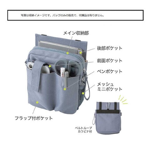 ・材質:(本体)ポリエステル、PVC、(ベルトループ)PP、(カラビナ)アルミニウム、鉄