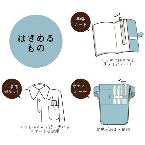 ・クリップが付いているので手帳やノート、仕事着のポケット、ウエストポーチにはさんで持ち運ぶことができます。