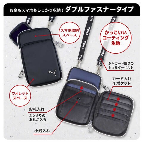 クツワ スマホポーチ ダブルファスナー PUMA(プーマ) ブラック PM489BK