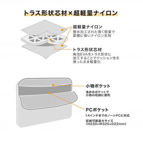 メイン収納部には14インチまでのノートPCが収納可能