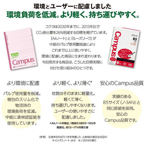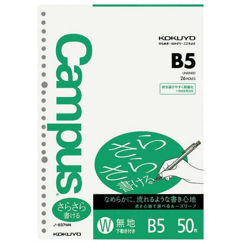 コクヨ キャンパスルーズリーフ B5/26穴 ノ-837W