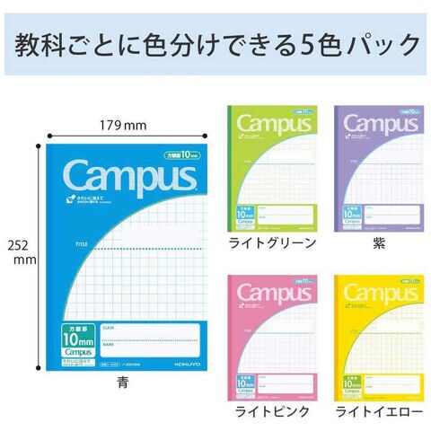 コクヨ [ノート] キャンパスノート(用途別) 10mm方眼罫 5色パック (セミB5・10mm方眼罫・30枚) ノ-30S10X5