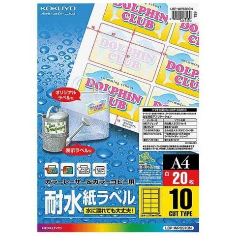 コクヨ カラーレーザー&カラーコピー用 ~耐水紙ラベル~(A4サイズ・10面・20枚) [LBPWP6910] LBP-WP6910