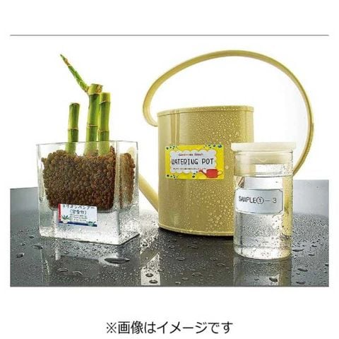 生活防水レベルの耐水紙ラベルなので、水に濡れても大丈夫。水回りの表示ラベルや値札などに最適です。