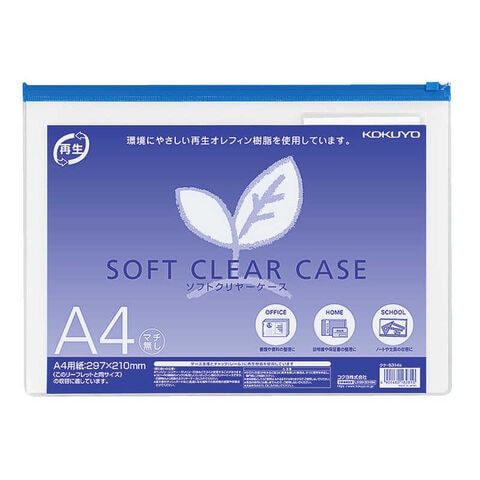 コクヨ ソフトクリヤーケース再生A4マチなし 青 クケ6314B