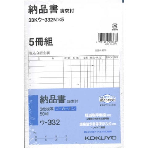 コクヨ 3枚納品書B6タテ型請求付き 33Kウ332X5
