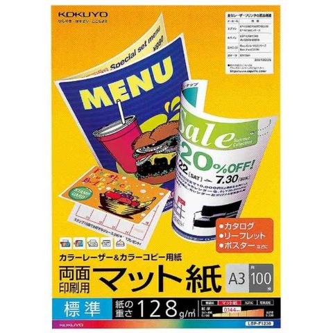 コクヨ カラーレーザー&カラーコピー 両面印刷用マット紙・標準 [LBPF1230] LBP-F1230