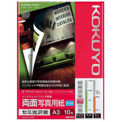 コクヨ インクジェットプリンター用 両面写真用紙 セミ光沢紙 [KJJ23A310] KJ-J23A3-10