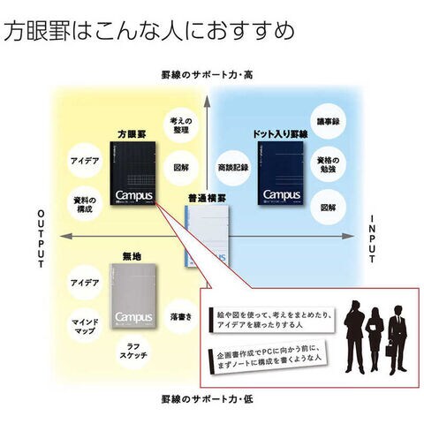 ●図や表が書きやすい5mm方眼罫。上部にタイトル欄があります。