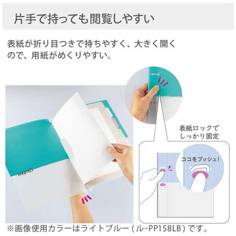 仕様1:●表紙/R-PP●最大収容枚数 100枚●セット内容/中紙(B5サイズ)10枚・PP製カラー見出しシート(B5サイズ)5枚*この製品は、「リベットはずし機」(フ-RTV1)で表紙ととじ具を分別することができます。●中紙/ノ-836BTN