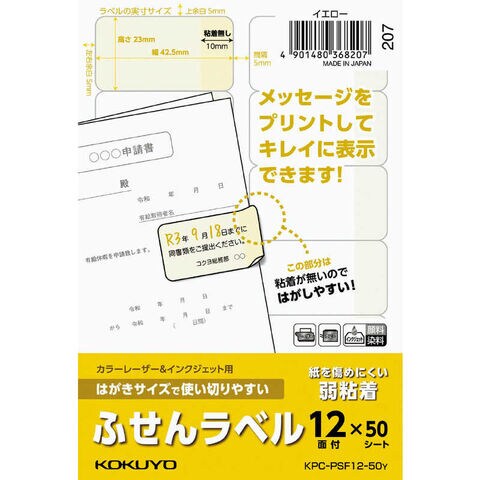 コクヨ はがきサイズふせんラベル 12面イエロー KPCPSF1250Y