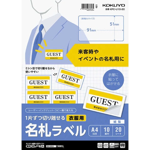コクヨ 1片ずつ切り離せる 衣服用名札ラベル KPCU1020