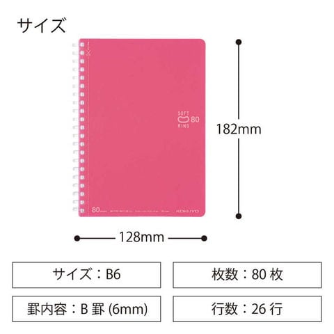 コクヨ ソフトリングノート(カラフル)ドットB罫80枚B6 ライトピンク ス-SV348BT-LP