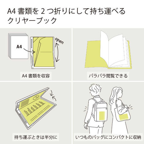 ●A4書類を2つ折りでコンパクトに持ち運んで必要なときにパラパラ閲覧できる