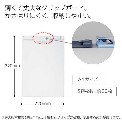 ●最大収容枚数(約3mm)以上挟むとクリップが破損、変形する恐れがあります。