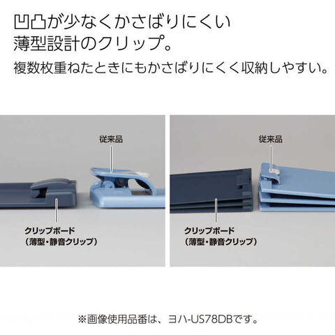 ●薄くて丈夫なクリップボード。凹凸が少なくかさばりにくい薄型設計のクリップ。