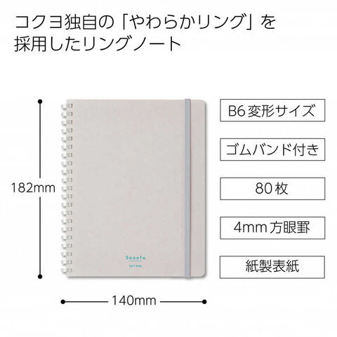 コクヨ ソフトリング板紙表紙方眼 B6変形80枚 ス-SE748S4-LM Sooofa(スーファ) ライトグレー スSE748S4LM