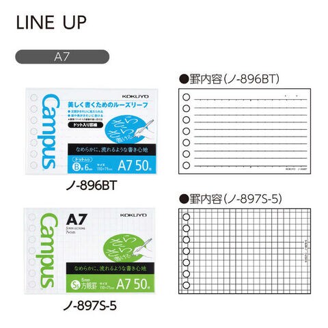 コクヨ ルーズリーフ(さらさら)方眼罫 A7 ノ-897S-5 Campus(R) ノ897S5