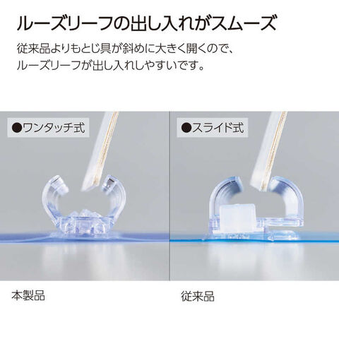 ●綴じ具が大きく開いて中紙の差し替えもスムーズ。