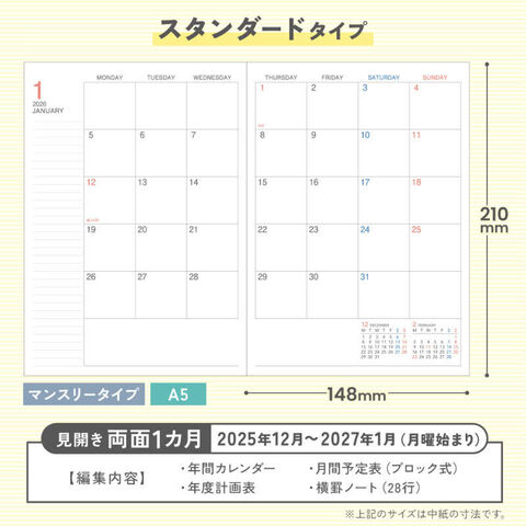 ●デジタルと併用でスケジュール管理をする方にもぴったりな見開き1カ月タイプ。