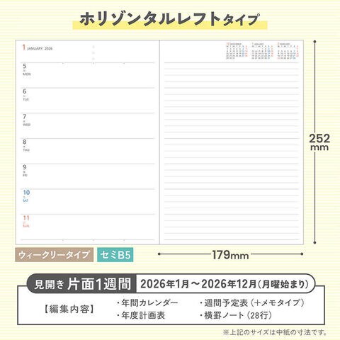 人気のキャンパスダイアリー・ホリゾンタルレフトタイプ。