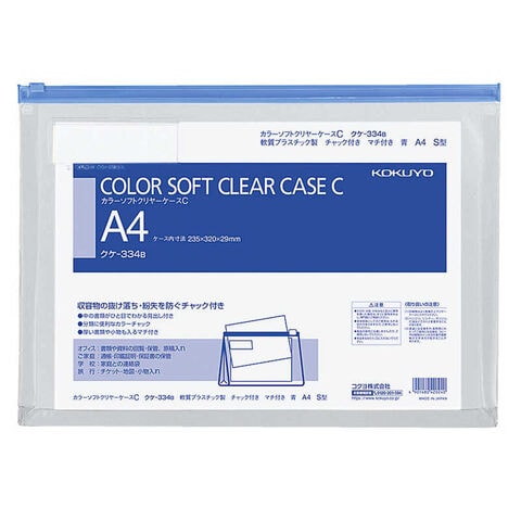 コクヨ カラーソフトクリヤーケースCマチ付A4 青 クケ334B