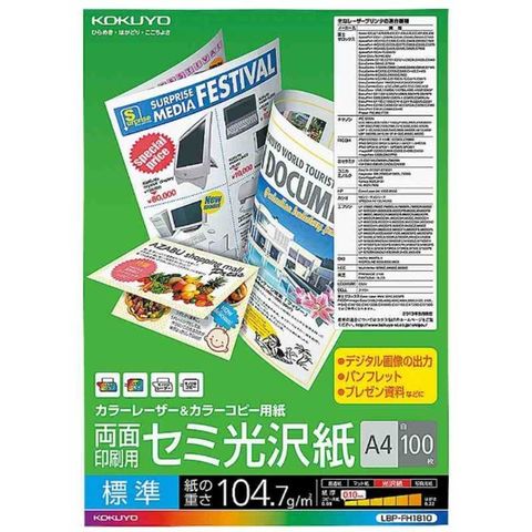 コクヨ カラーレーザー&カラーコピー用紙 両面 セミ光沢 標準 [LBPFH1810] LBP-FH1810