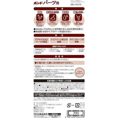 プラモデル・模型などのパーツ固定、ラインストーンの接着、様々なデコレーション用途におすすめのパーツ用ボンドです。