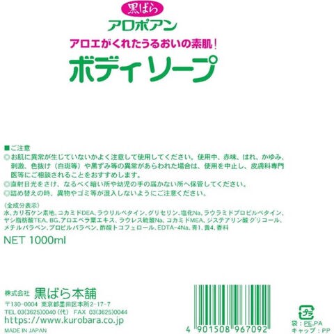 黒ばら本舗 アロポアン ボディソープ つめかえ用 1000mL