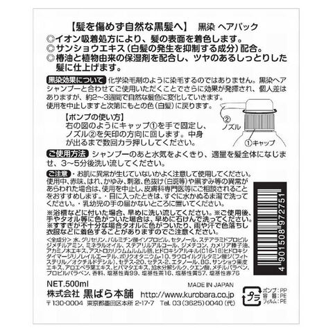 黒ばら本舗 黒染ヘアパック ポンプタイプ 500mL
