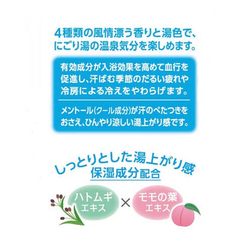 ●保湿成分(ハトムギエキス、モモの葉エキス)配合でしっとりとした湯上がり感です。