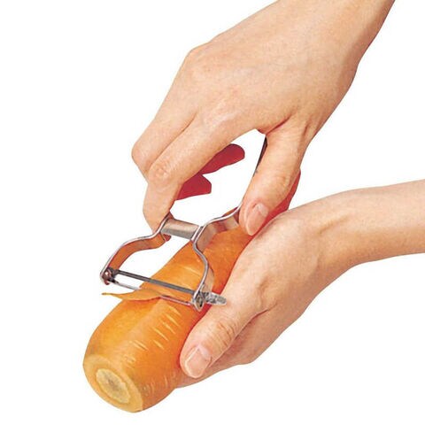 ●皮むき時に食材が見えやすく、持ちやすいハンドル形状。