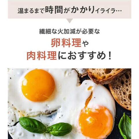 薄い側面はフライパン全体に素早く熱が回り、厚い底面が保温性を高めるので「時短」調理にも一役買う機能性フライパンです。