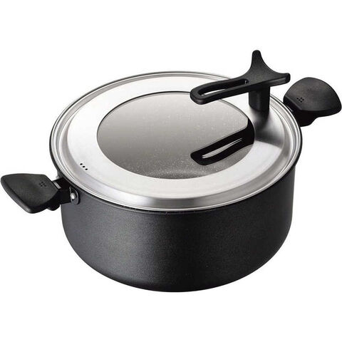 仕様3:材質:本体: アルミニウム合金 貼り底: ステンレススチール、底の厚さ: 2.6mm 取付金具: アルミニウム合金 取っ手: フェノール樹脂(耐熱温度150度) ハンドルキャップ: ナイロン(耐熱温度200度) 蓋: 強化ガラス製器具(強化の種類: 全面物理強化) フレーム部: ステンレススチール スタンド部: フェノール樹脂(耐熱温度150度)
