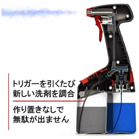 ●使用方法はカートリッジ(別売り)を付け、水を注ぎ、トリガーを握るの簡単3ステップです。