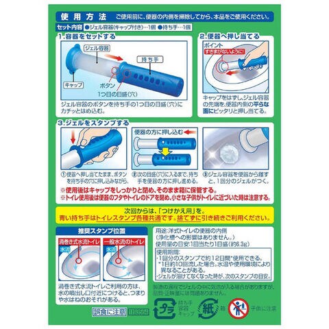 ●ジェル容器を便器から離すと、1回分のジェルがつく。