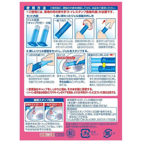 ●ジェル容器を便器から離すと、1回分のジェルがつく。