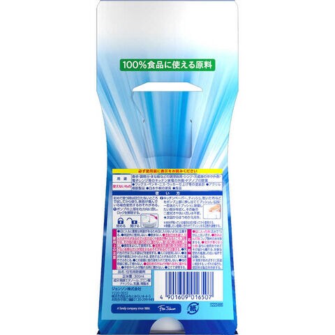 2.キッチンペーパー、ティッシュ、乾いた布などをポンプ上部に押し当てプッシュし(目安: 一回あたり1プッシュ)、除菌したい部分を拭く。その後二度拭きや洗い流しは不要。