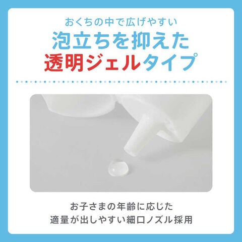 3.おくちの中で広げやすく、仕上げみがきに適した泡立ちを抑えた透明ジェルタイプです。