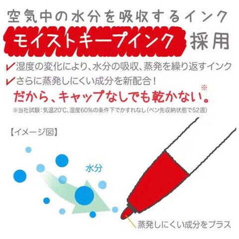 1、ノックしてすぐ書ける&乾かないモイストキープインク搭載!2、36色の豊富なカラーバリエーション、発色も鮮やか!3、クリッカートなら黒インクの上から重ねて書いてもにまない!4、シンプルで丸みのある使いやすいデザイン。