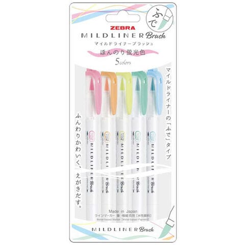 ゼブラ マイルドライナーブラッシュ 水性ペン ほんのり蛍光5色セット WFT8-5C-N