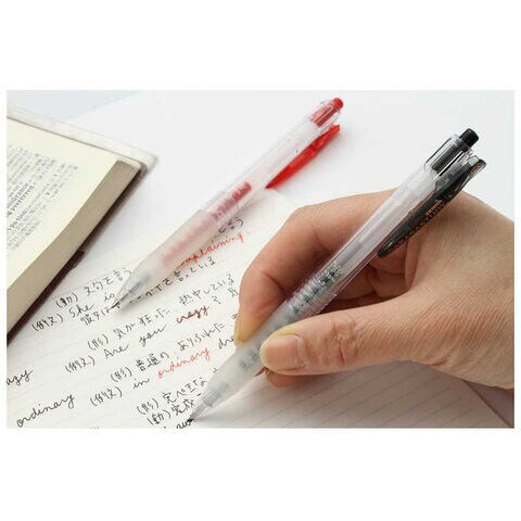 さらさらとした書き心地で筆が進みやすく、また油性インクに較べると排出量が多いために減りが早いので、使用している実感が得やすくなっています。