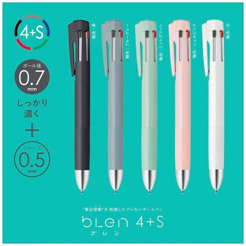 ブレン4+Sは、4色ボールペン+シャープペンが1本にまとまった5機能タイプです。