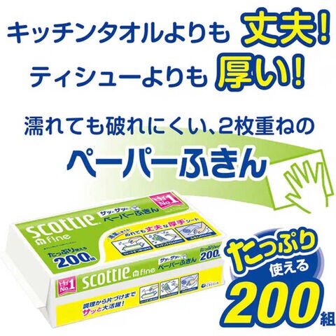 日本製紙クレシア scottie(スコッティ)ファイン ペーパーふきん サッとサッと 200組×3個パック